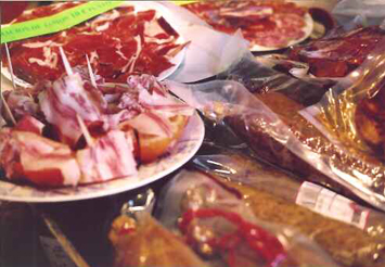 自由に生ハムやイベリコ豚を使った料理を買って食べられるようになっていました。